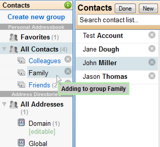 • "All Contacts" is a list of all personal contacts webmail knows about, excluding shared contacts. Personal contacts not belonging to any group are visible in this group.